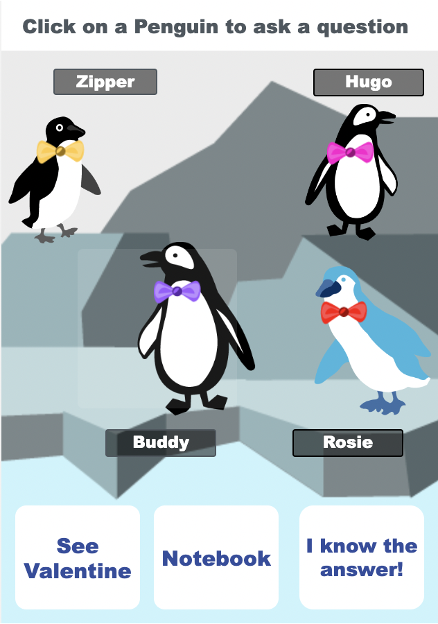 This penguin game is based on a computer program printed in Ranger Rick magazine sometime in the late 1980s. I read the code out line by line and my Dad typed the commands into the DOS machine he brought home from work. The plot of the program involved Pandas, zookeepers, and deeds most foul. I adapted the story to be about penguins, rather than poison.